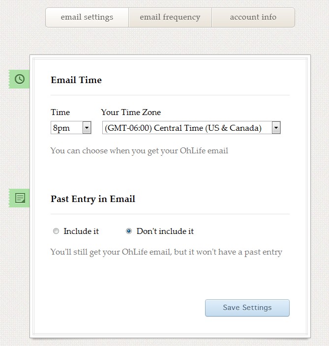 When you receive the email simply reply with your thoughts and it will be saved directly to your account. You can even add one photo. Doesn't get much easier than that. This is a great way to record your thoughts, and keep track of things. If you choose the "Past Entry in Email" option, you could use it as a reminder. Just make sure you set the time for when you need it. New parents and mom's to be can keep track of all those special moments. Ohlife helps you put all your thoughts in one place. The most important thing Ohlife is private. They will not sell or share your information. OhLife Privacy Policy